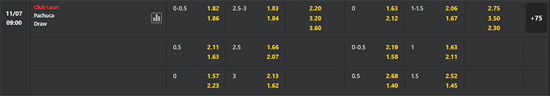 Nhà cái đưa ra tỷ lệ kèo tài xỉu trong trận đấu giữa Club Leon vs Pachuca là 2.5-3.