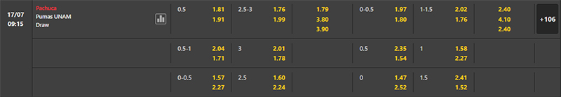 Mức kèo tài xỉu được nhà cái đưa ra trong trận đấu giữa Pachuca vs Pumas UNAM là 3.